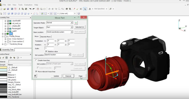 Şimdi bir örnek üzerinden ilerleyelim. Kameranın lensinin konumunu değiştirerek yeni bir snapshot alalım. Bunun için öncelikle “Assemly Tree” üzerinden “Lens” katmanını seçin. Böylelikle sadece bu katman altındaki bölümleri taşıyabilirsiniz. Sonrasında araçlar menüsünden “Move Part” butonuna tıklayın ve lensin konumunu dilediğiniz gibi değiştirin. Konumu değiştirdikten sonra açılan pencere üstünde “Update” ve sonrasında da “Execute” butonlarına basın ve pencereyi kapatın. Tüm bunları yaptıktan sonra yeni snapshot oluşturarak değişiklerinizi kaydedin.