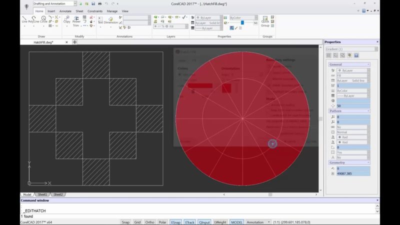 CorelCAD’i açtığınızda, orta bölümde ana çizim alanını görebilirsiniz. Aşağıdaki görüntüde de olduğu gibi siyah alan çizimlerinizi yapmak için kullandığınız alandır.